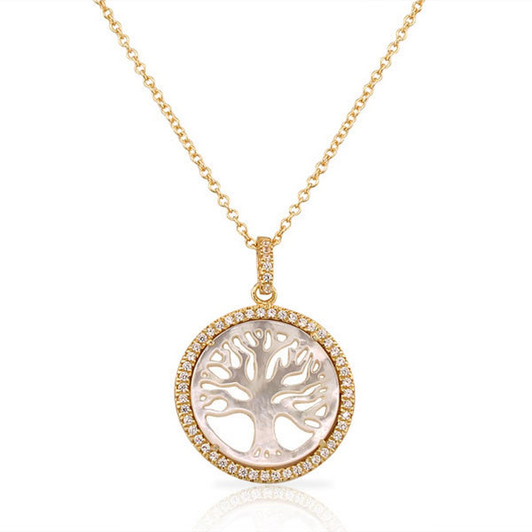 • **Signature Style:** 925 Sterling Silver Simulated Mother of Pearl CZ Tree of Life Classic Pendant Necklace crafted with refined details.