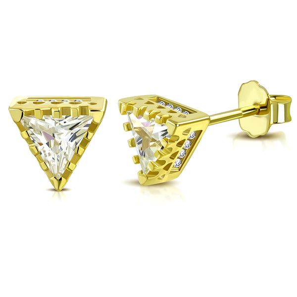 925 Sterling Silver White Clear CZ Triangle Stud Earrings, 0.25"