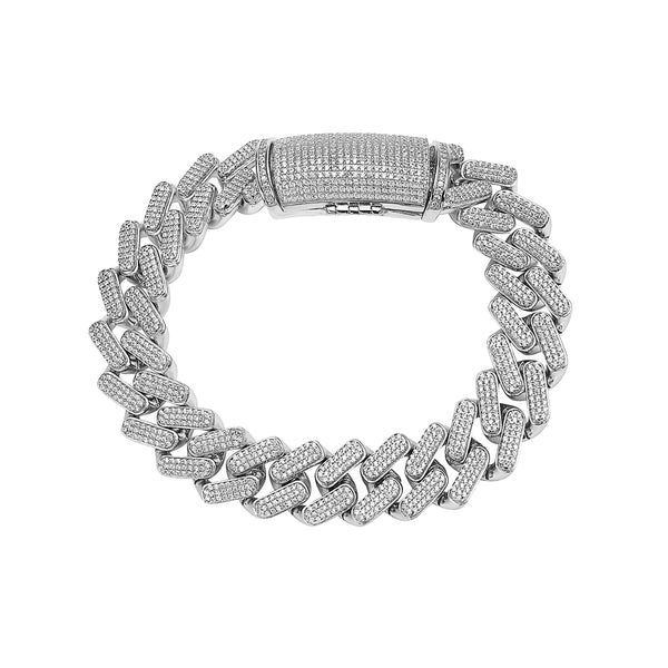 Men's 925 Sterling Silver Iced Out Bling Cuban Link CZ Cubic Zirconia Hip Hop Bracelet
