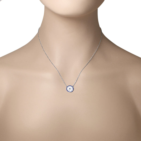 The sterling silver jewelry is a perfect gift for a lady. The pendant showcases an elegant design displaying an Evil Eye-shaped charm sparkling with beautiful round white and blue CZ stones. The Evil Eye design on this necklace is believed to protect the wearer from bad luck. The necklace is crafted of sterling silver. Get it for your loved one, or treat yourself for a classic timeless style. The delicate yet durable adjustable link chain measures 16.00in - 18.00in long and locks with a spring ring type of clasp for extra security. Look and feel great with this exquisite necklace!