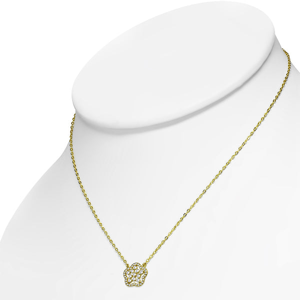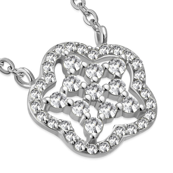 925 Sterling Silver Star CZ Flower Floral Pendant Necklace, 18"