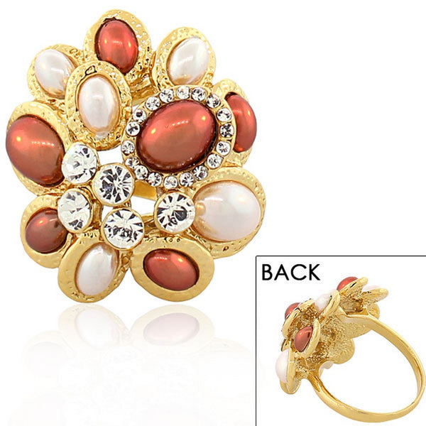 My Daily Styles Fashion Alloy Yellow Gold-Tone Brown White Simulated Pearls Clear CZ Cocktail Ring