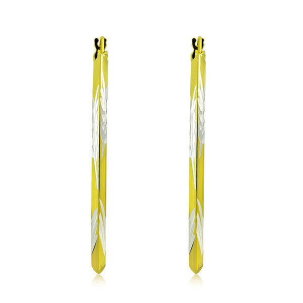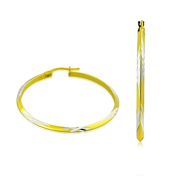 My Daily Styles - Hoop Earrings for Women - Diamond Cut Hoop Earrings - Yellow Gold Plated 925 Sterling Silver Earrings - Lever Back Closure - Flattering Textured Look - 41 mm