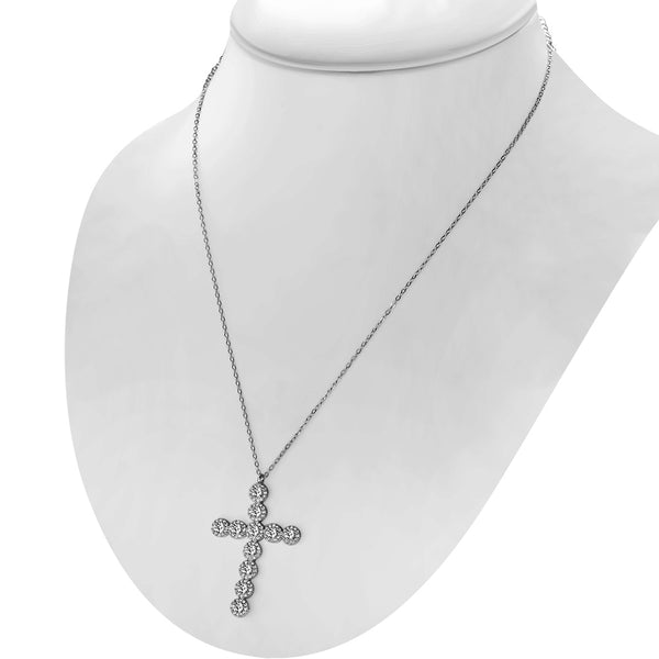 My Daily Styles Women's Large 925 Sterling Silver CZ Cross Pendant - Adjustable Chain 16"-18"