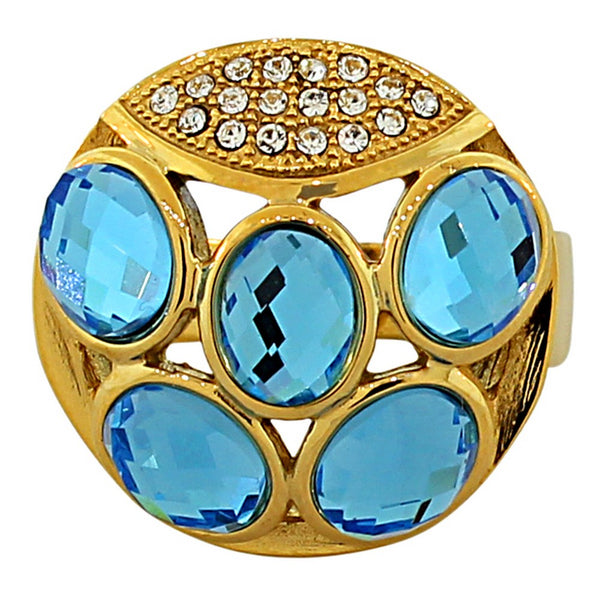TECNO STEEL Stainless Steel Yellow Gold-Tone White Blue Aquamarine-Tone CZ Ring